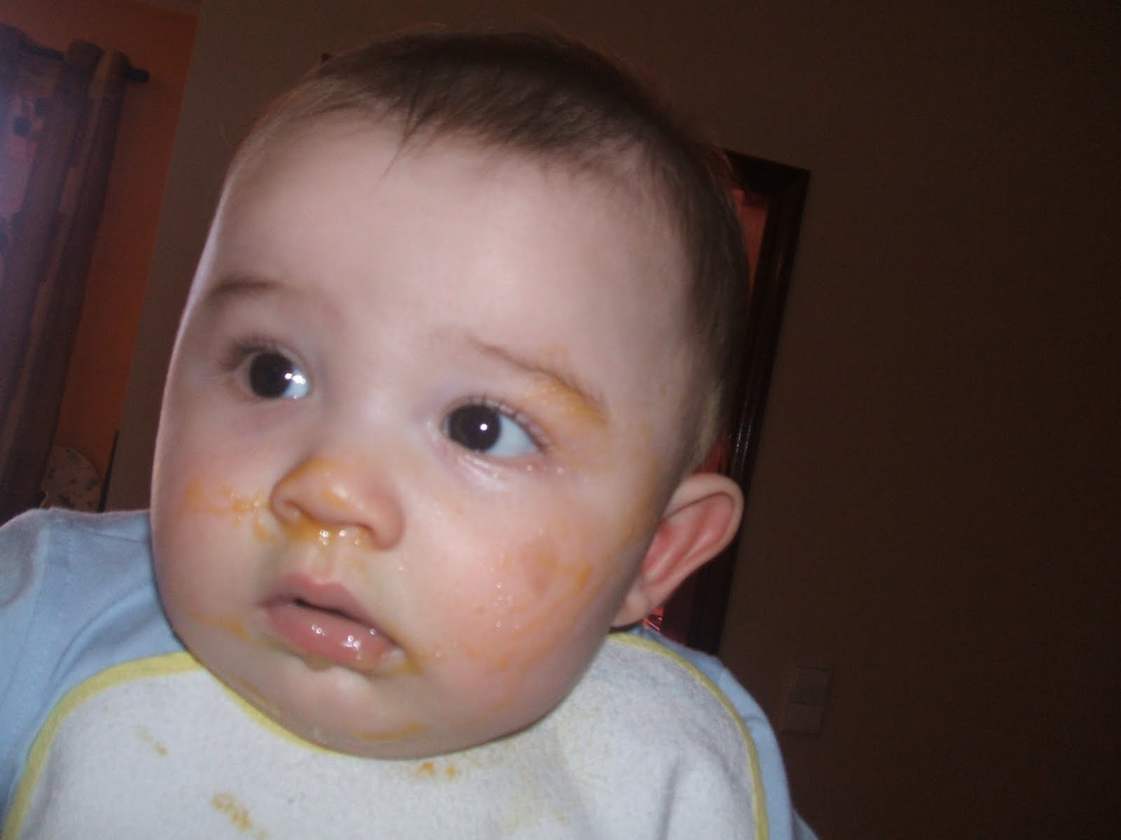 Que bochechinhas tão fofas!!!Ainda bem que ele gosta, o meu nem abre a boca!!!!